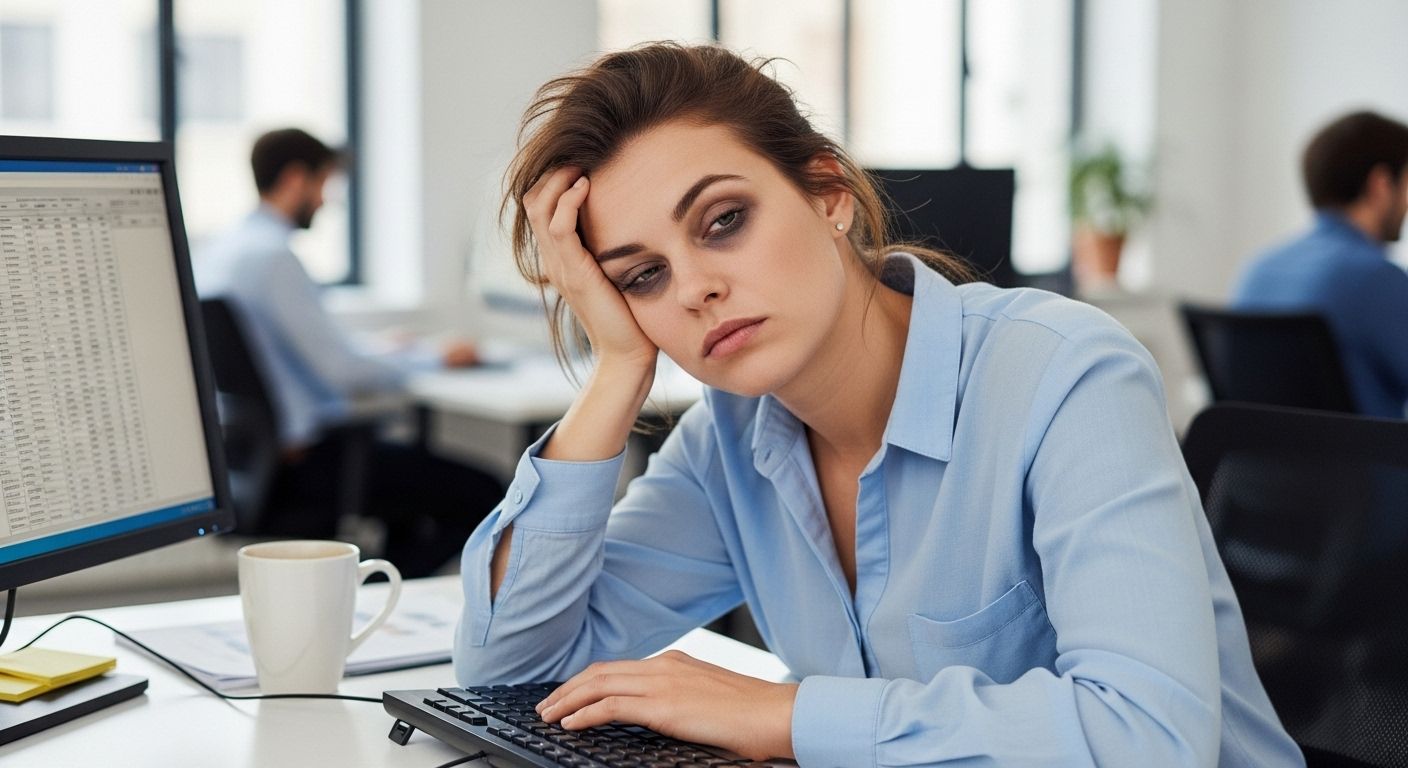 This image shows a stressed worker, overwhelmed and physically fatigued [...]