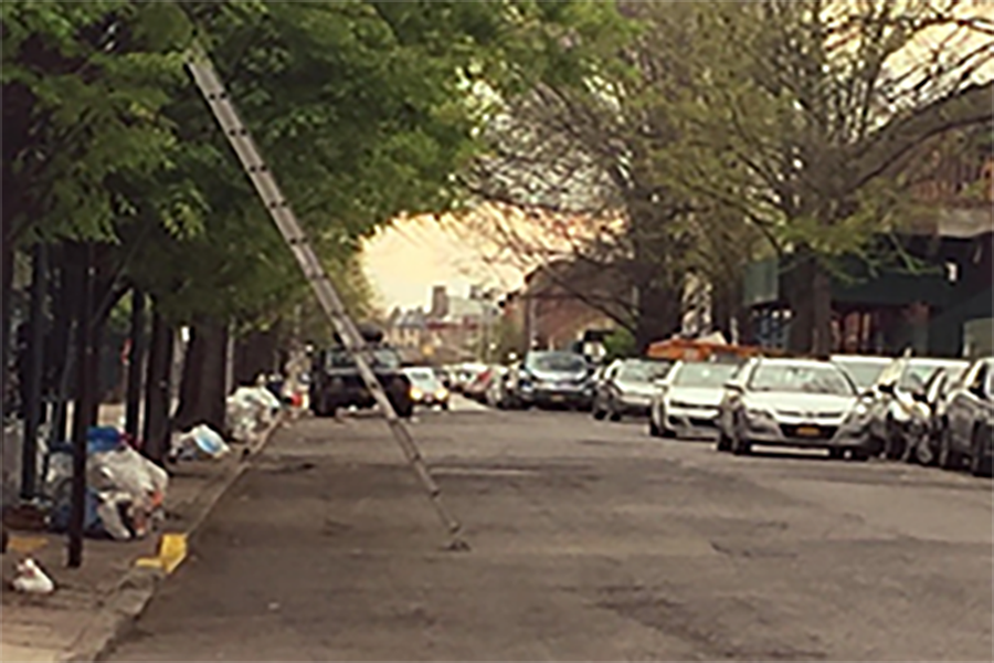Whoever set this ladder up must have been so focused on getting the job done that he or she forgot to follow basic safety procedures.