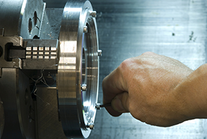 A machinist was finishing a piece of stainless steel on a lathe. The metal shavings peeled off the rotating lathe in one large wire strand and wrapped around his neck, causing partial decapitation. Investigation of