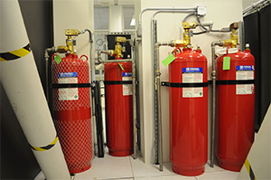 Two workers were suffocated by gas from a fire extinguishing system they were repairing on a ship. They were working on the cylinders containing carbon dioxide. Suddenly three of the cylinders discharged, filling the room
