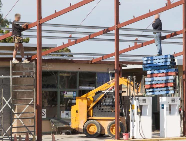 We’re not sure what sort of work these guys thought they would be performing on this day, but they certainly didn’t come prepared with any equipment to keep themselves safe while working at heights. It’s ironic to see the safety cones set up on the ground at left. Safety first, right guys? (WorkSafe Victoria, Australia)